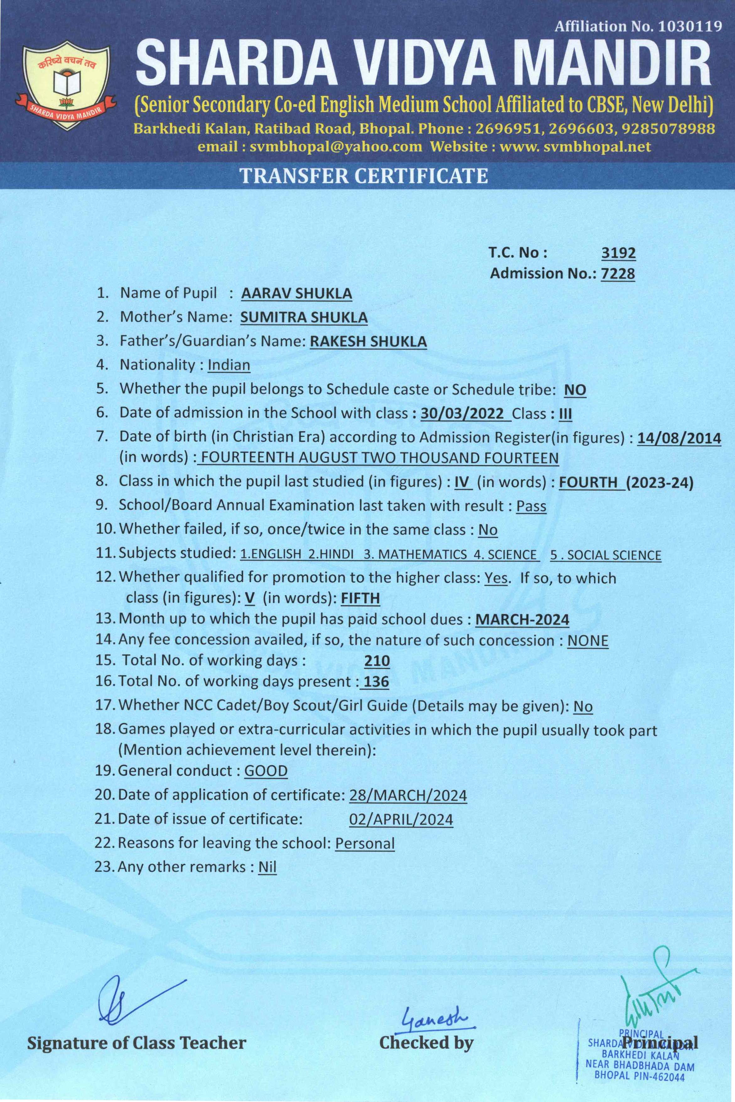 Transfer Certificate