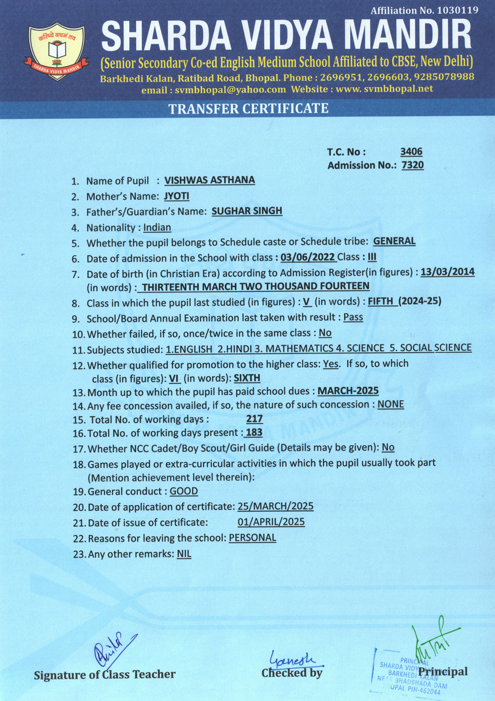 Transfer Certificate