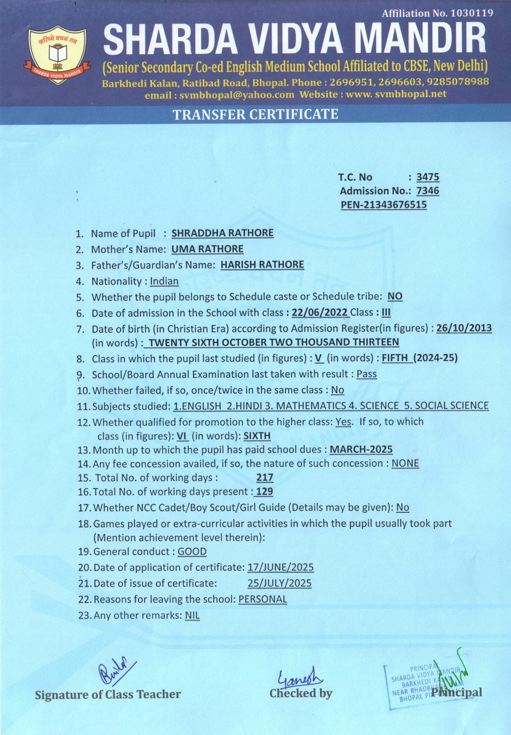 Transfer Certificate