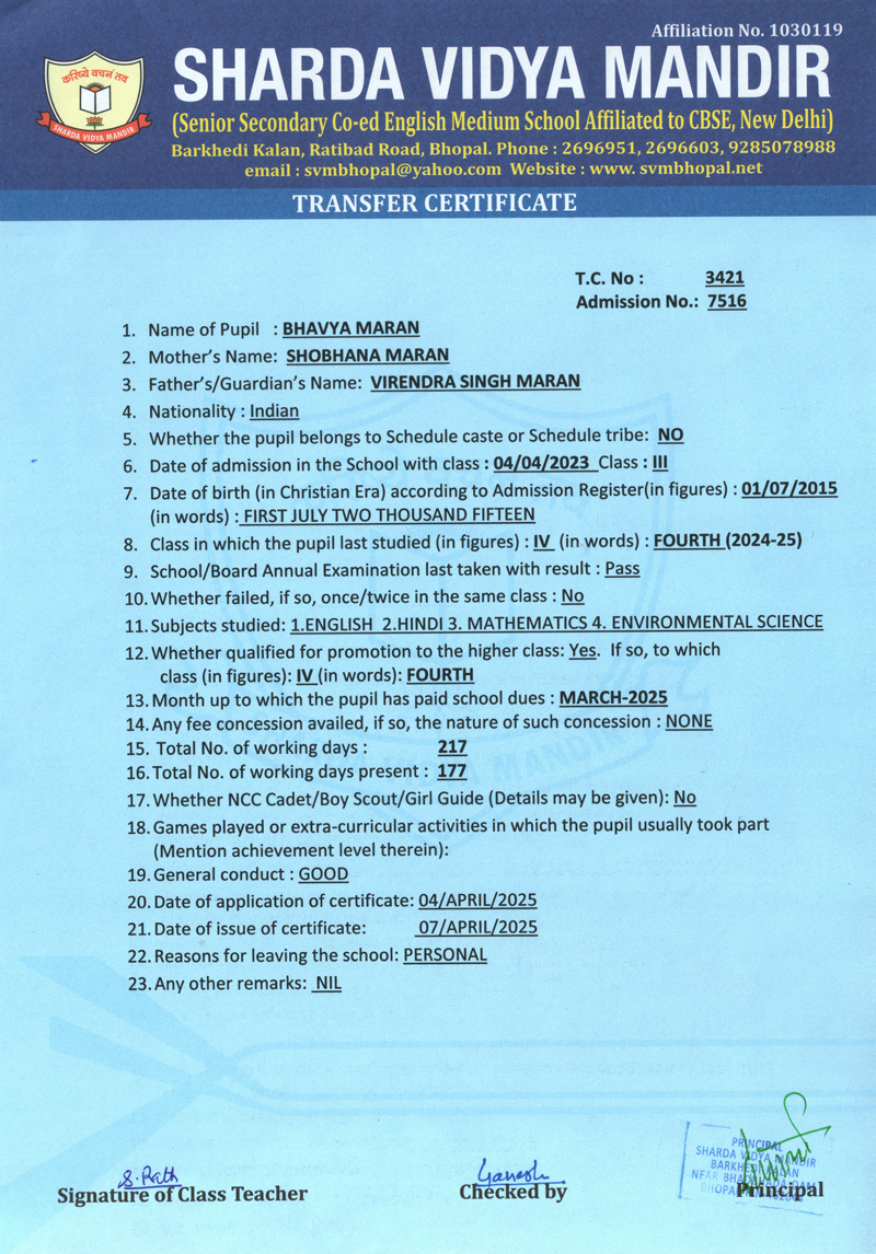 Transfer Certificate