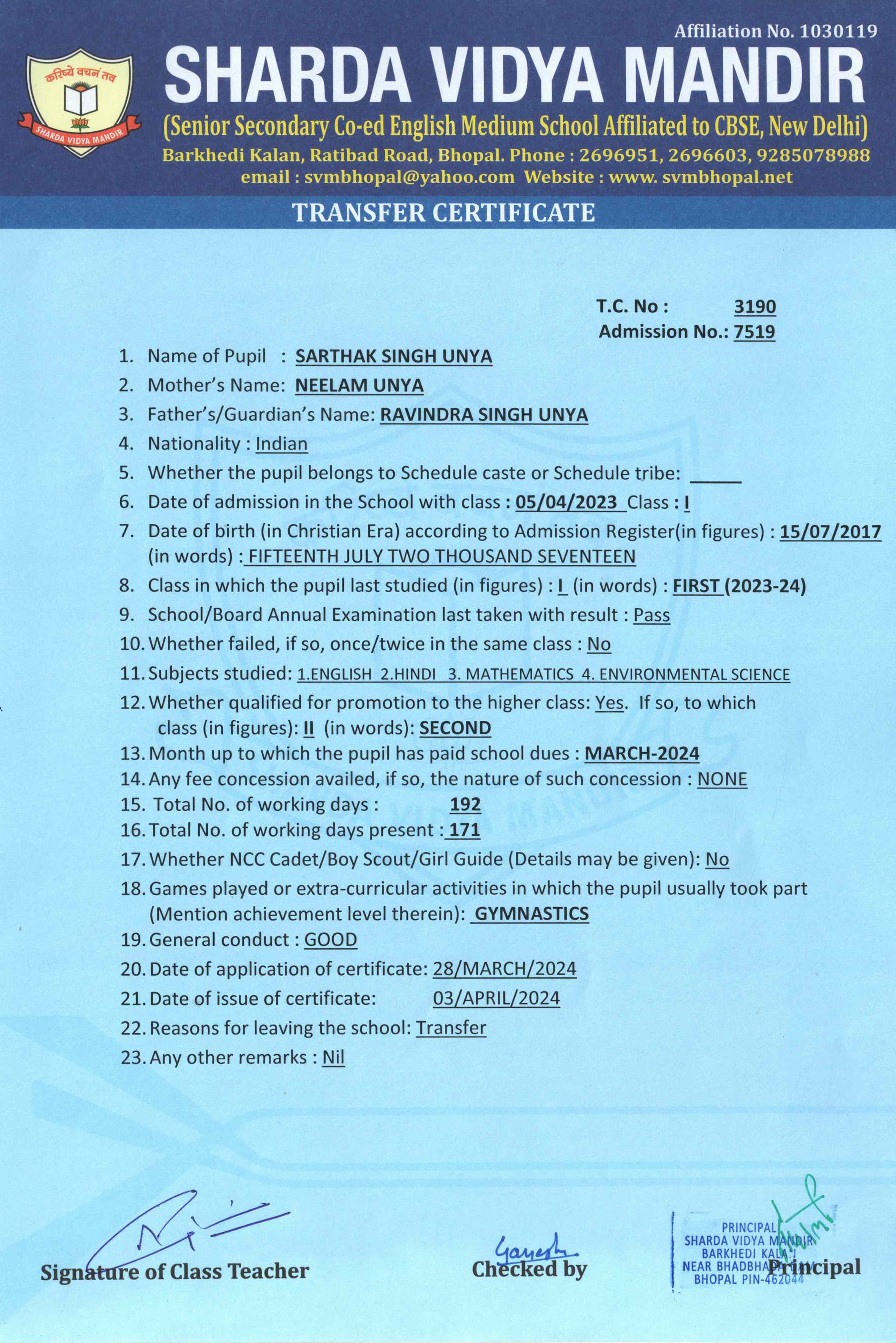 Transfer Certificate