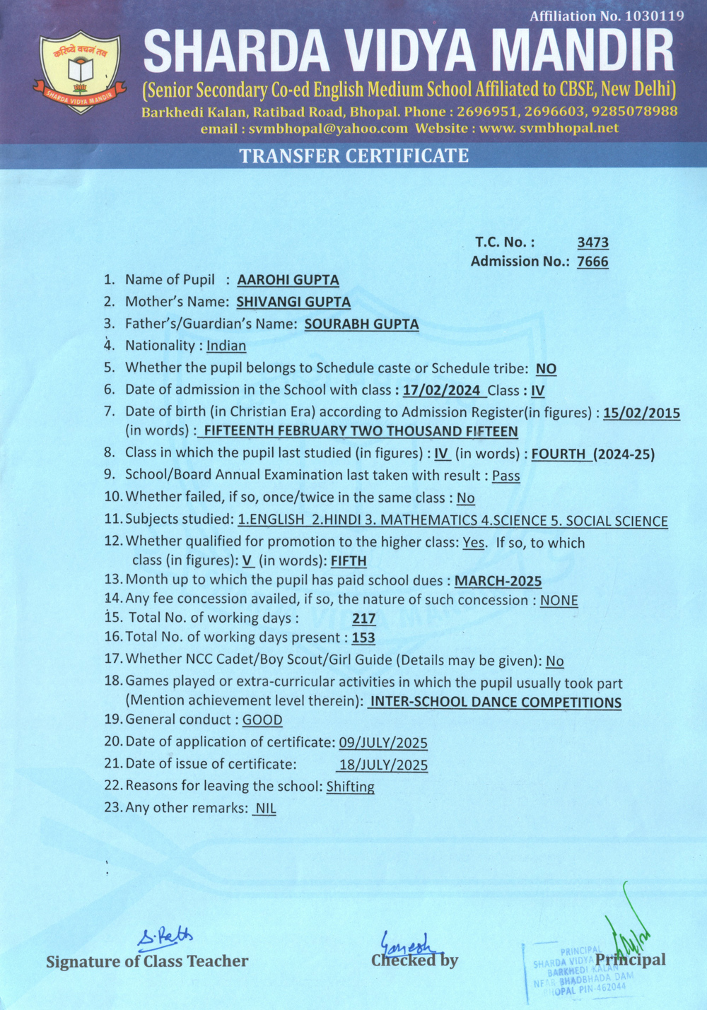 Transfer Certificate