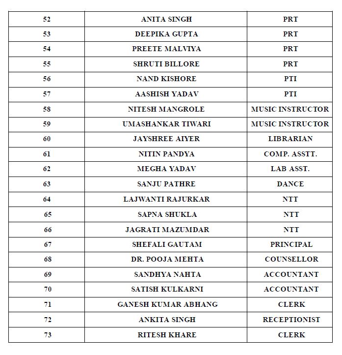 List of Staff